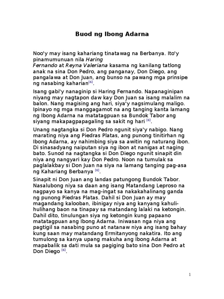 View Buod ng Ibong Adarndocx from RESEARCH 501 at Royal Melbourne Institute of Technology. Ang epikong ito ay isang tulang pasalaysay na kinilala rin sa boung pamagat niya na Corrido at Buhay na Pinagdaanan nang. Ano ang buod ng aralin 13 ibong adarna 1 See answer Advertisement Advertisement idonguines25 is waiting for your help.