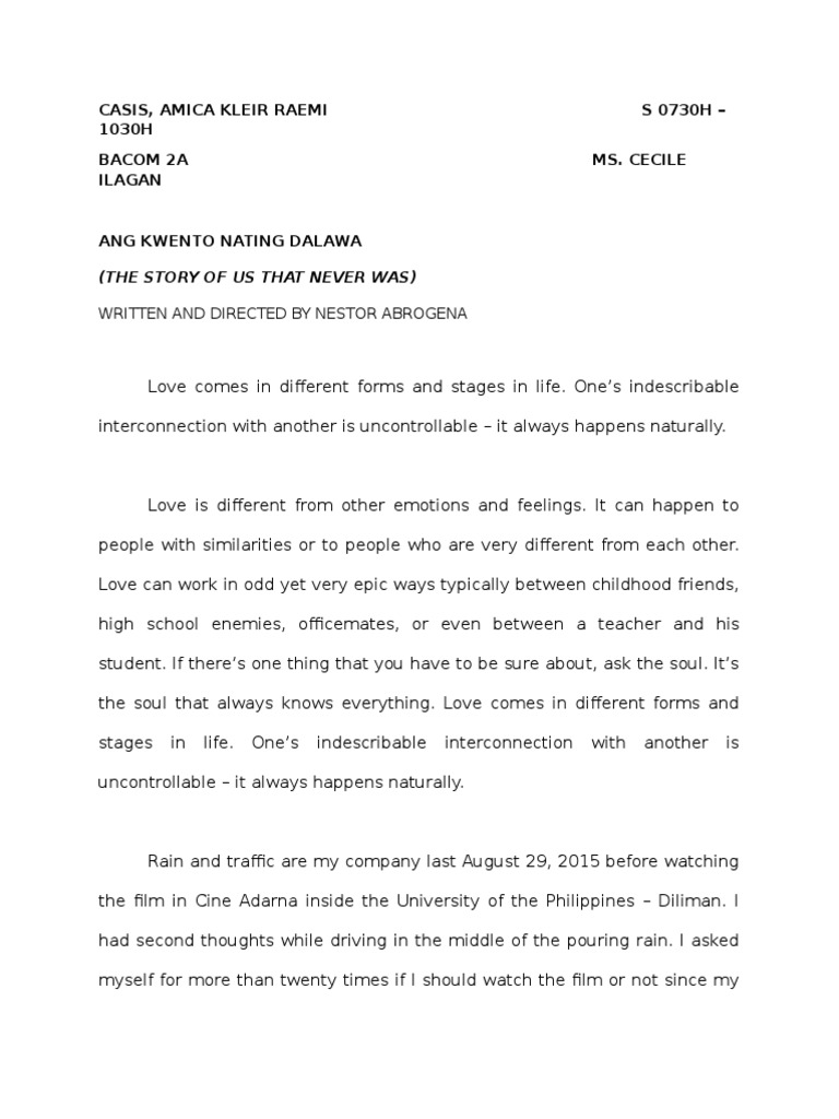 Ngunit masaya akong tatahakin ang buhay ko ngayonnang may ngiti sa labi dahil alam kong nariyan ka lang sa paligid at hindi ka magsasawang hintayin ako Carmela. Ang Kwento Nating Dalawa The Story of Us That Never Was introduced us to Isa Sam an affectionate couple who have been together for six months. It could be different setup than that in the movie but the same thought.