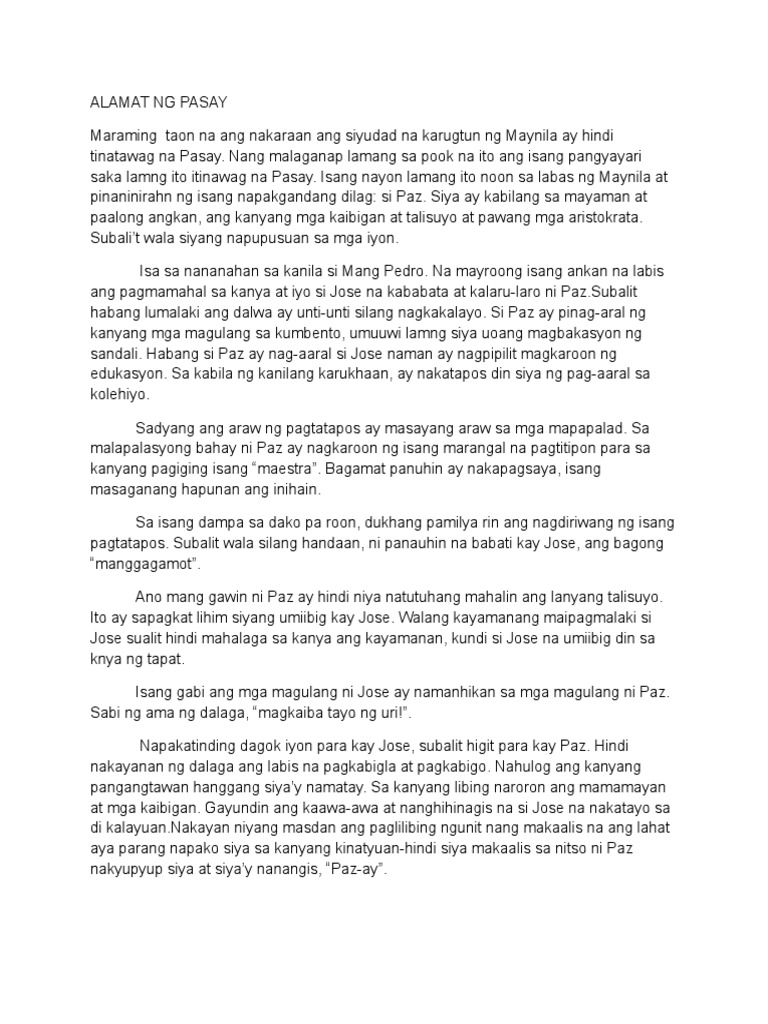 Siya ay si Sultan Barabas na masama ang ugali. Summary of the legend of pasay. Isang araw naisipan ng magkasintahan na magtanan upang malayo sa amang ubod ng sama.